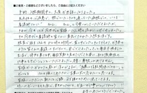手術、入院期間中と大変お世話になりました。